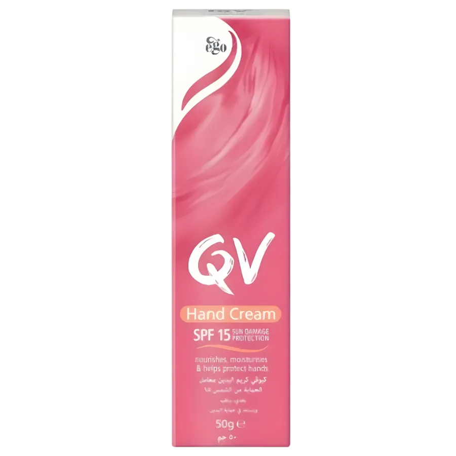 الوصف : مرطب كيو في لليدين مع عامل حماية من الشمس15 _QV HAND CREAM Spf15.